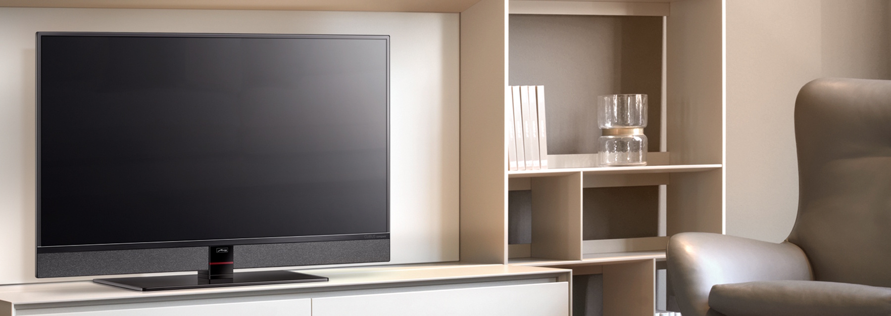Der CUBUS compact verbindet Eleganz und Technik auf kleinstem Raum. Ein wertiger drehbarer Glas-Mittelfuß verleiht dem kompakten Gerät einen soliden Stand. In beiden Größen liefert er brillante Farben und erstklassige Kontraste in Full HD und unterstützt HDR10 sowie HLG für höchste Farbtreue. Auch die übrige Ausstattung sucht in diesem Format ihresgleichen: So sorgt ein einzigartiges Frontlautsprechersystem mit MetzSoundPro-Technologie für satten Klang und klare Sprachverständlichkeit. Über einen Pay-TV-fähigen Triple Twin Tuner, USB-Aufnahme- und Timeshift-Funktionen sowie HbbTV bietet er umfassenden TV-Komfort. Drei HDMI- und zwei USB-Schnittstellen nebst Bluetooth, LAN und WLAN und vielfältige Audioanschlüsse garantieren zusätzliche Flexibilität. Damit ist er perfekt für alle, die einen kompakten Fernseher suchen, ohne auf den Komfort einer Premium-Ausstattung zu verzichten.